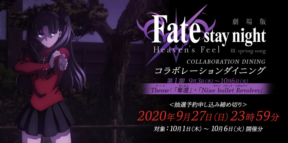 Ufotable Dining 会場のお間違えにご注意ください 劇場版 Fate Stay Night Heaven S Feel Spring Song コラボレーションダイニングはufotabledining 東京都新宿区新宿3丁目9 1 地下1f での開催となります Ufotable Dining Hanare とは別